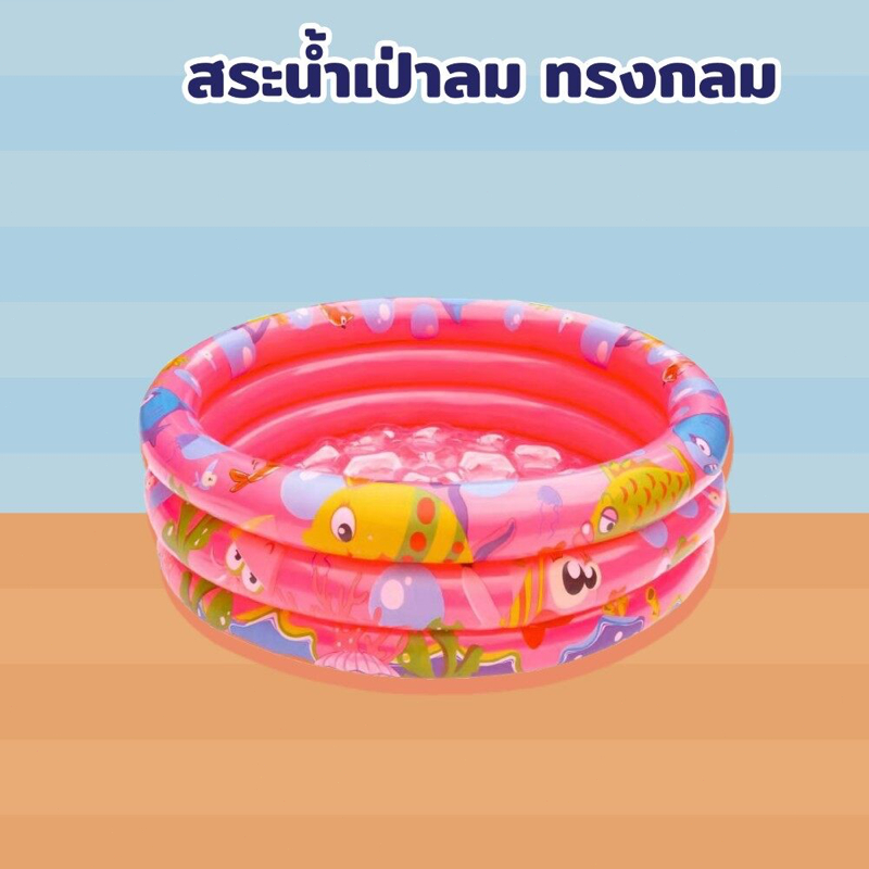 สระน้ำเป่าลม กลม อ่างน้ำเป่าลม 90cm พื้นกันกระแทก ลายปลา สำหรับเด็กเล็ก
